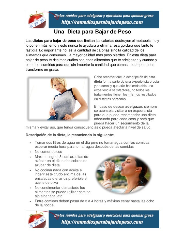 Dietas Consejos utiles para ayudarte a perder peso rapido. La perdida de peso es algo que. lo cual es importante si usted enserio quieres bajar de peso. Dieta.